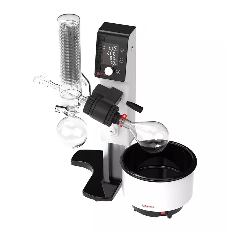 Электронный подъёмный механизм обеспечивает плавное и безопасное перемещение испарительной колбы, позволяя быстро поднимать её из нагревательной ванны в случае необходимости. Дополнительные функции безопасности включают защиту от перегрева, защиту от сухого хода и автоматическое отключение питания.