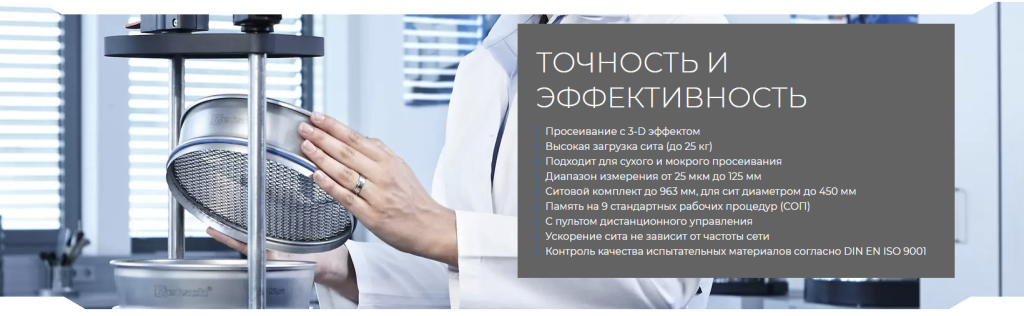 | Зажимные устройства | стандарт, «комфорт», каждая для мокрого и сухого просеивания |